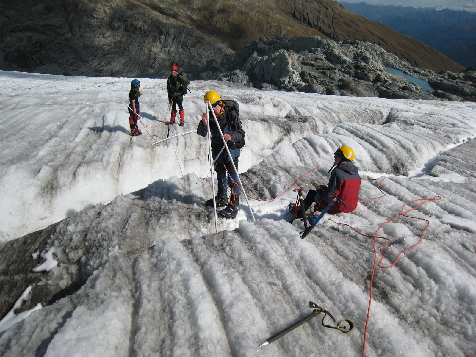 Our job was to measure the length of a network of plastic stakes (ablation stakes) that had been inserted into the ice in November last year. This gives information on the amount of melting of the ice surface over the summer months. The data is combined with information from a weather station that is set up nearby and allows an analysis of the factors that effect the annual mass balance of the glacier over time.
