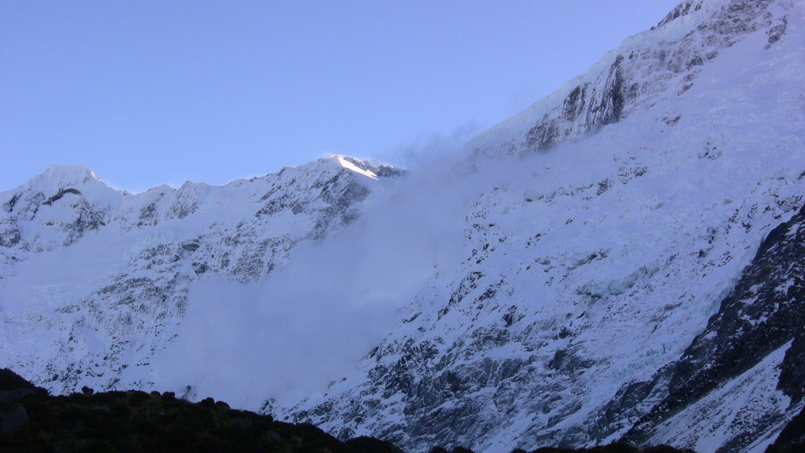 On the way back to the car park, we saw a couple of huge avalanches crashing down the East Face of Mount Sefton. These were the biggest avalanches I have ever seen, and must have involved thousands of tonnes of ice coming of the vertical ice cliffs.