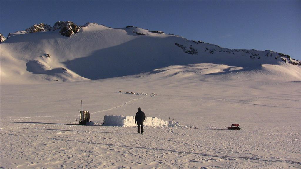 Yesterday we dragged the drill and equipment across the glacier, set it up in a newly dug pit and made a protective wall of snow blocks. After 10 metres we came to wet ice and decided there was no point to continue. Back to the drawing board.