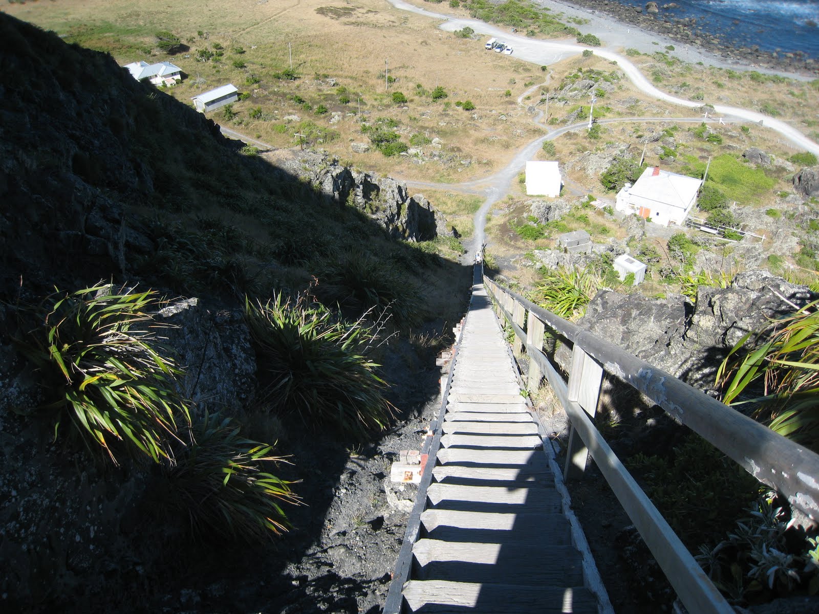 We followed the coast past the small settlement of Ngawi, and a huge tilted slab of fossiliferous sandsone called Kupe’s Sail, to the Cape Palliser lighthouse. This is built on a cliff of volcanic rock that was erupted under the sea as pillow lavas about 100 million years ago. The long staircase up to the lighthouse leads up to a great viewpoint.