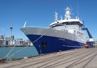 We left Auckland Port yesterday, as the sun was setting beyond the city skyline, and have been travelling North East into the Pacific Ocean along the Kermadec Volcanic Arc.Our mission is to make detailed geological and biological surveys of several of the undersea volcanoes that lie parallel to the plate boundary as it runs north east of the North  Island. This boundary is a geographically distinct line of several parallel features. Have a look at our video of a computer simulated flyby of New Zealand under the ocean .