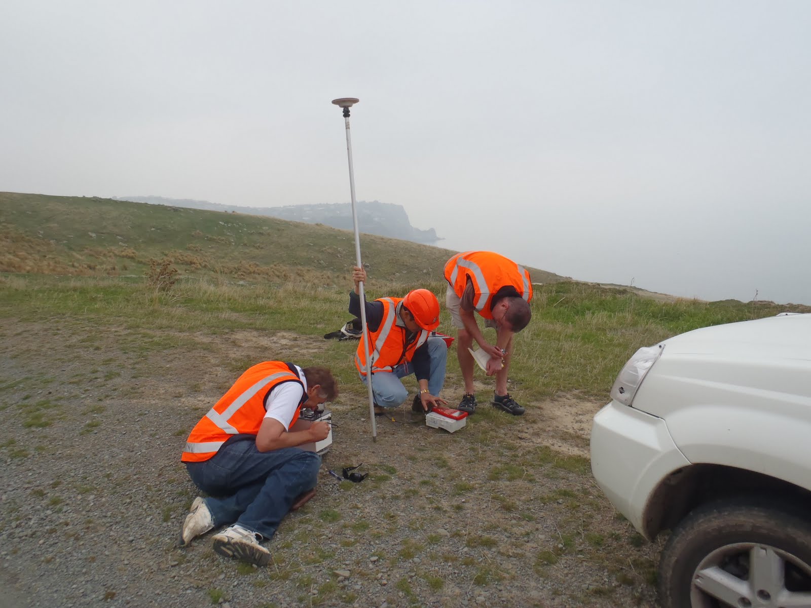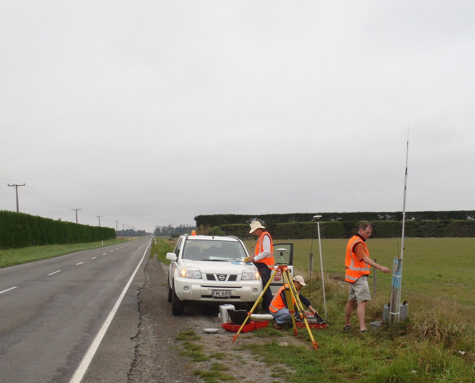 Last week I joined a small GNS Science team who have been making a gravity survey over a wide area around Christchurch City and Canterbury. In the second photo, Vaughan Stagpoole, Jiashun Yu and Dan Barker are setting up the GPS base station at a survey mark, to calibrate the GPS location measurements of the gravity survey.