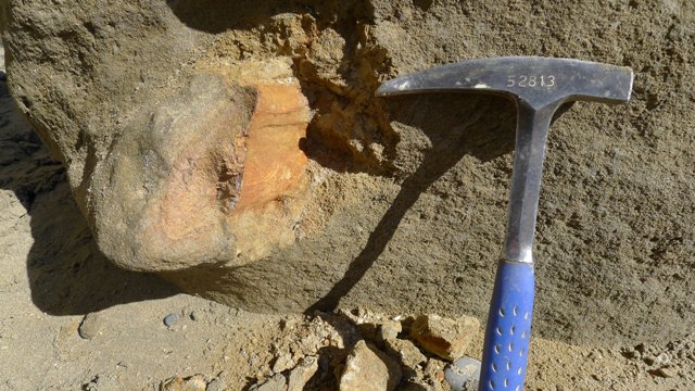 An exciting find on our visit was this fossil whalebone. It extended through the boulder for about one metre.