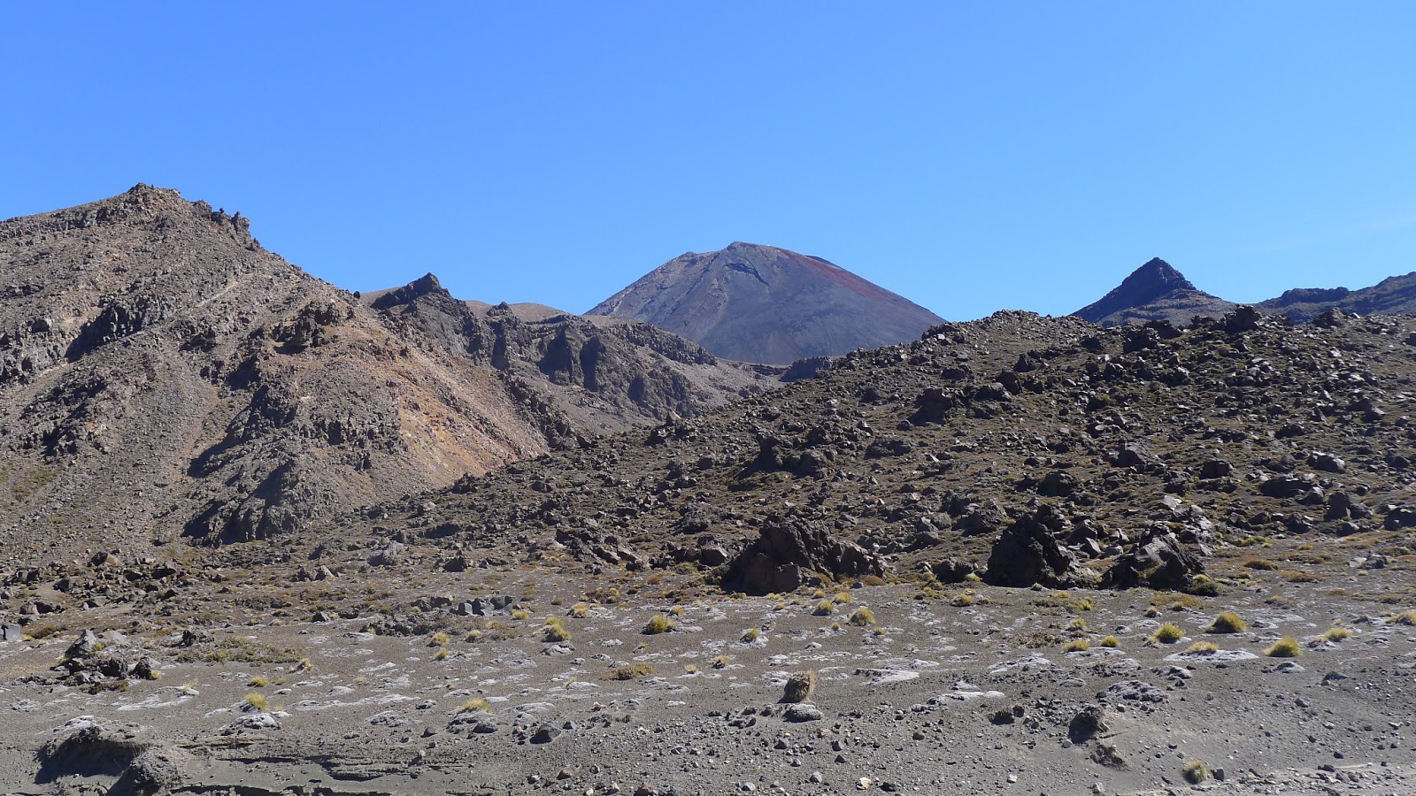 Descending the northern slope of Ngauruhoe, I then climbed a rocky ridge up to Tongariro peak, seen running from the centre to the right side of this photo: